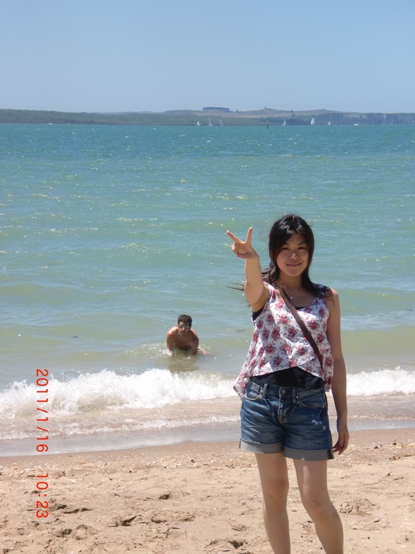 スィミンとmission bayへ。シティから一番近いビーチだけど、本当にキレイでびっくりした。オークランドは碧いエメラルドビーチの町。もちろん泳いだけど、どこまで行っていいというリミットがなくて怖かった…。
